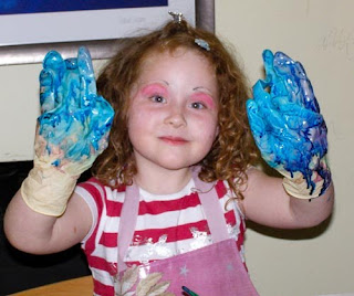 Here is Tess up to her elbows in dye, doing tie dye .......